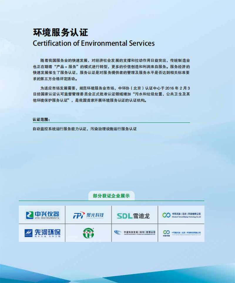 中環(huán)協(xié)(北京)認(rèn)證中心頒發(fā)的“中國環(huán)境服務(wù)認(rèn)證證書