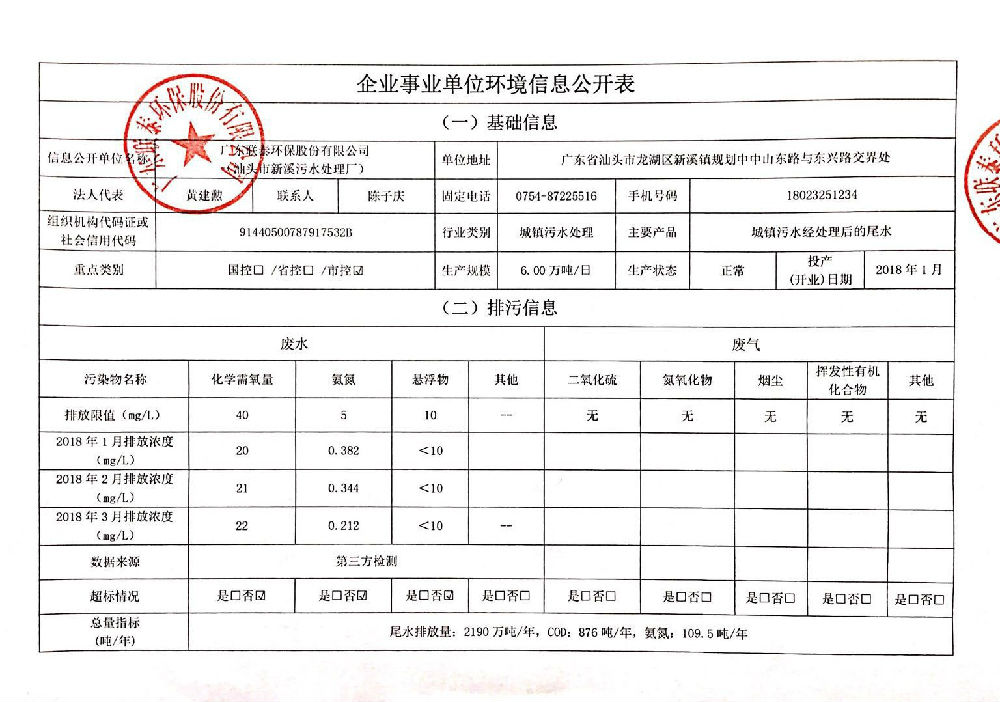 企業(yè)事業(yè)單位環(huán)境信息公開(kāi)表(新溪污水處理廠)