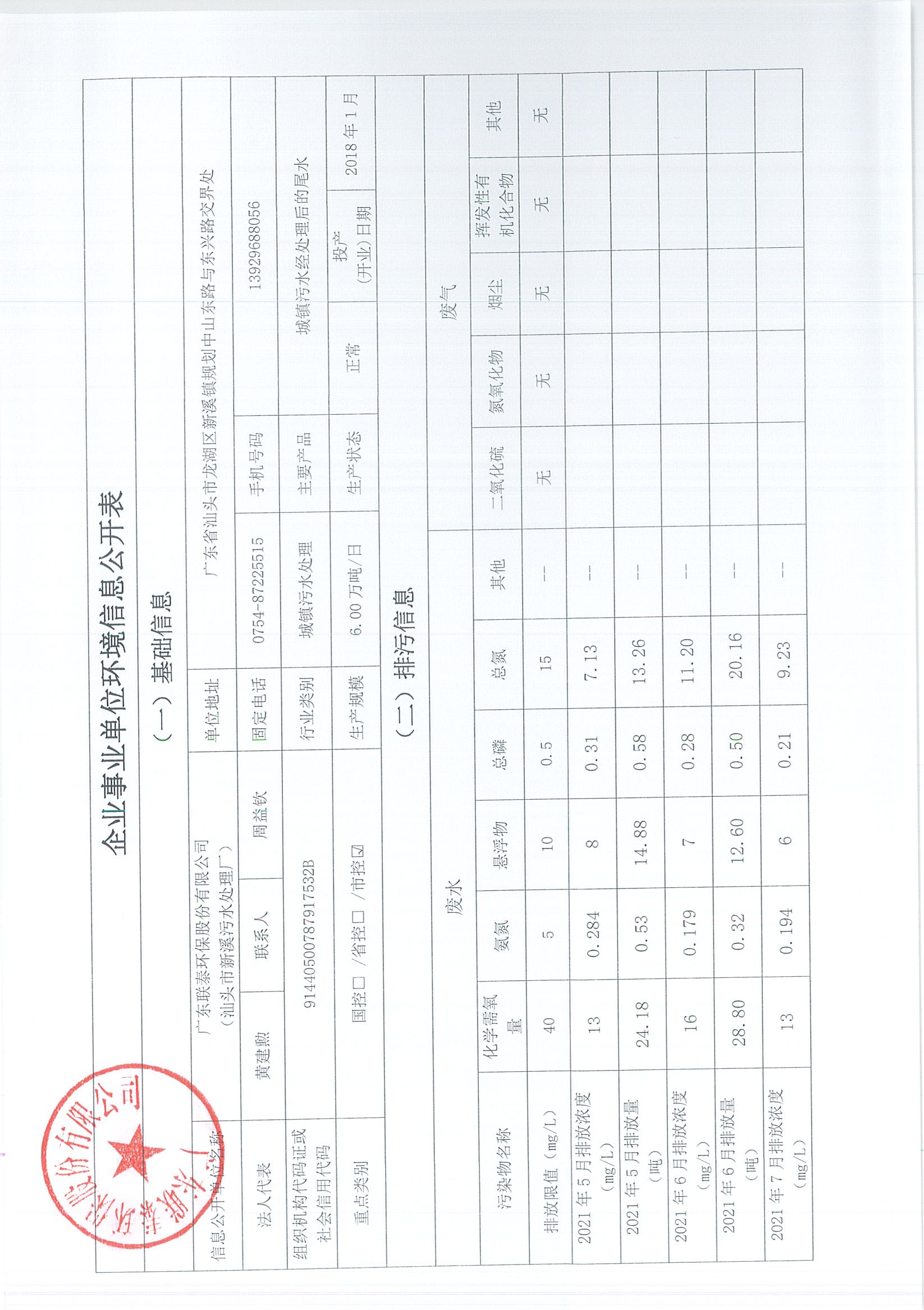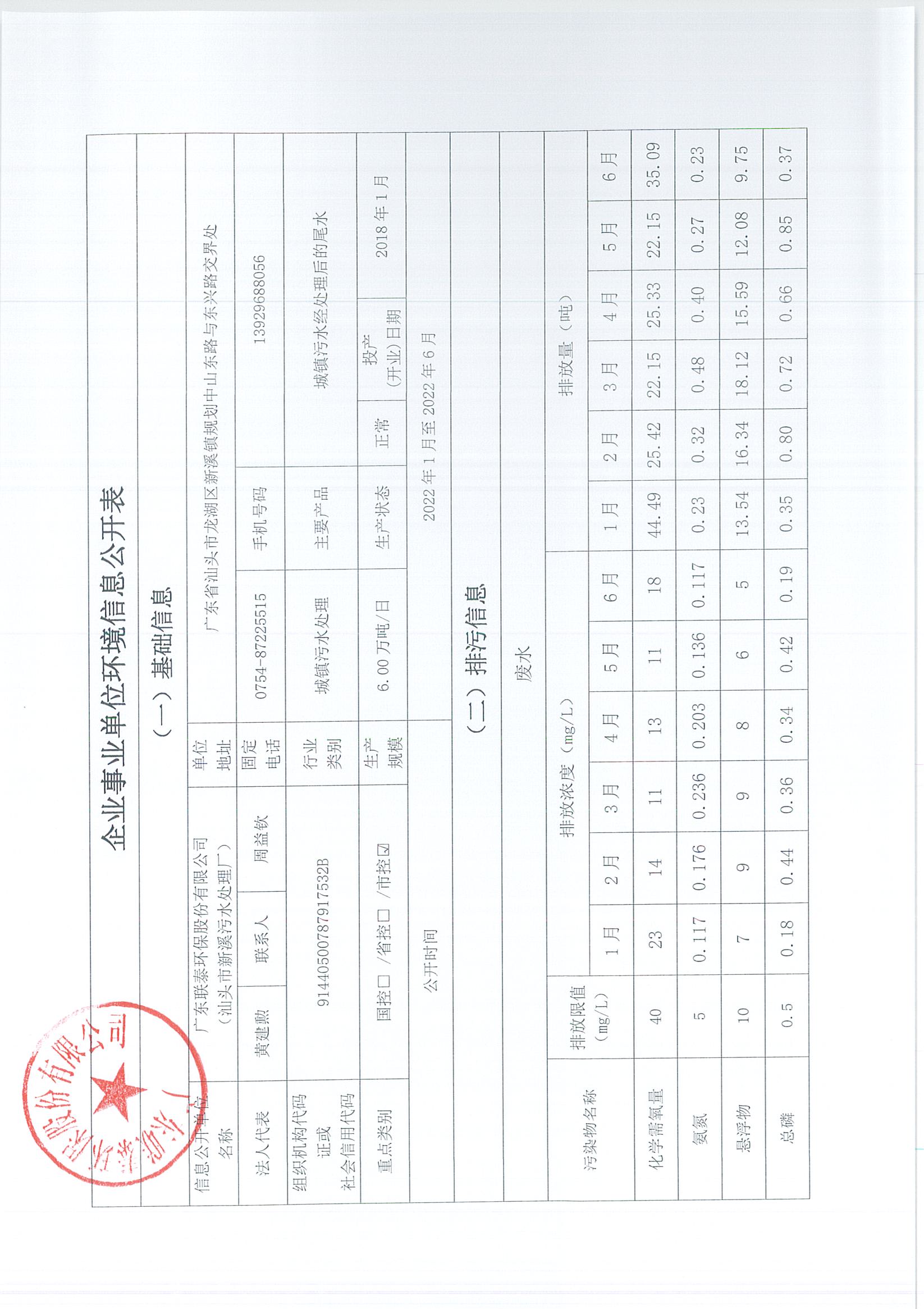 信息公開單位名稱: 廣東聯(lián)泰環(huán)保股份有限公司(新溪污水處理廠)