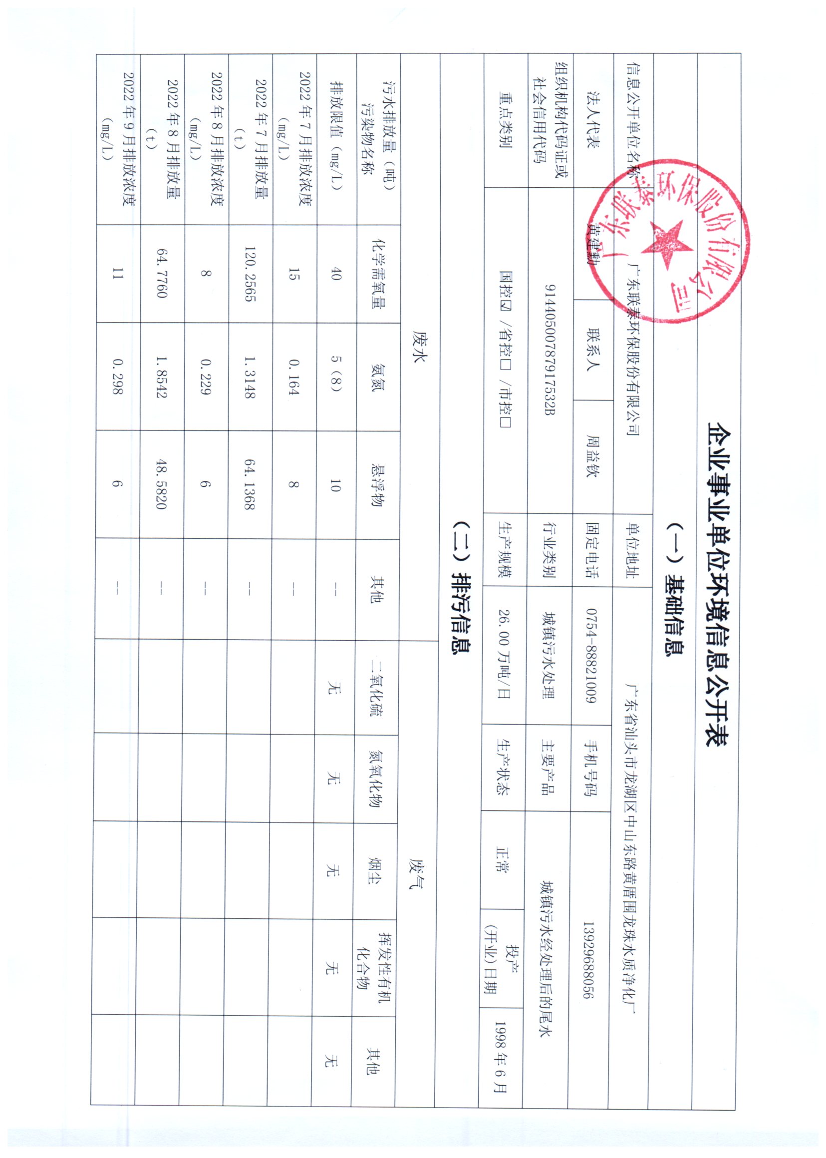 企業(yè)事業(yè)單位環(huán)境信息公開表